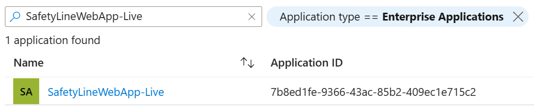 To verify you have completed these steps successfully, ensure that you see "SafetyLineWebApp-Live" listed under Enterprise Applications in your Microsoft Entra ID tenant.