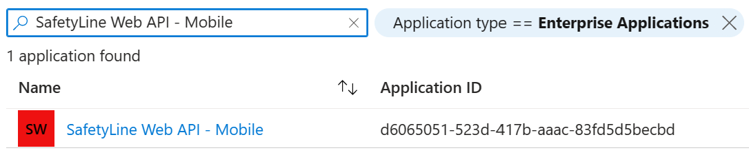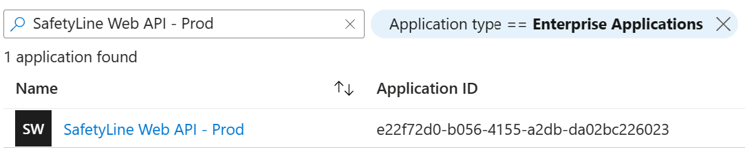 To verify have completed these steps successfully, ensure that you see "SafetyLine Web API - Prod" and "SafetyLine Web API - Mobile" listed under Enterprise Applications in your Microsoft Entra ID tenant.