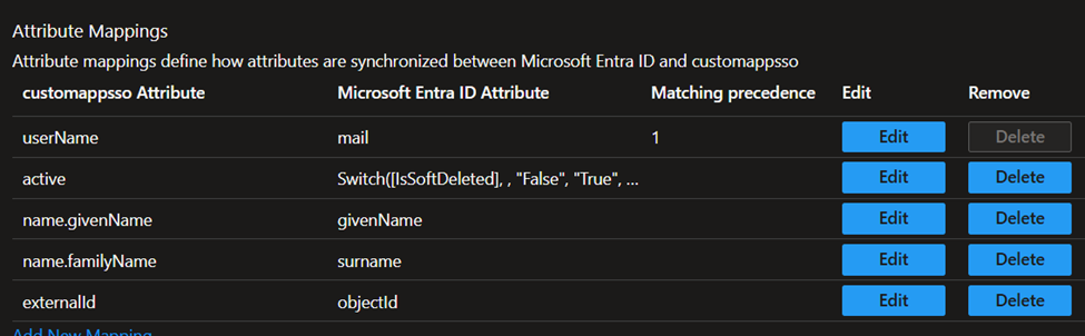 Follow the attribute mapping below and remove all other customappsso attributes: