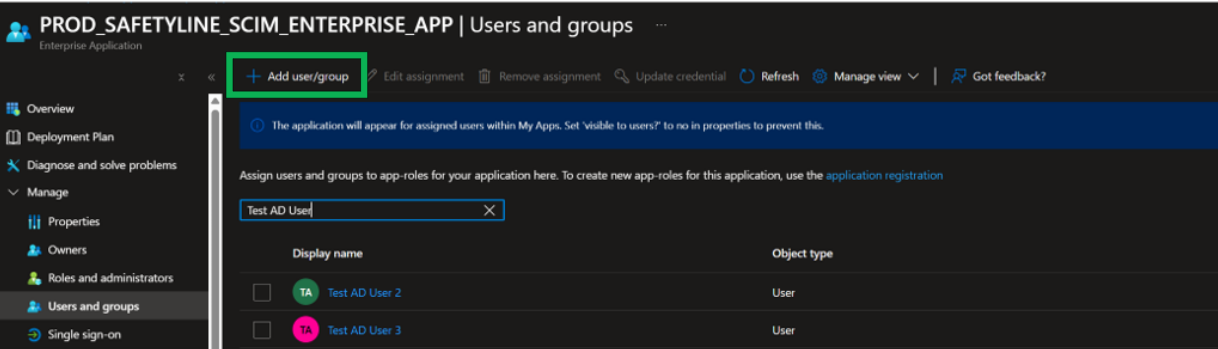 Go to Users and Groups on the SCIM-enabled enterprise application