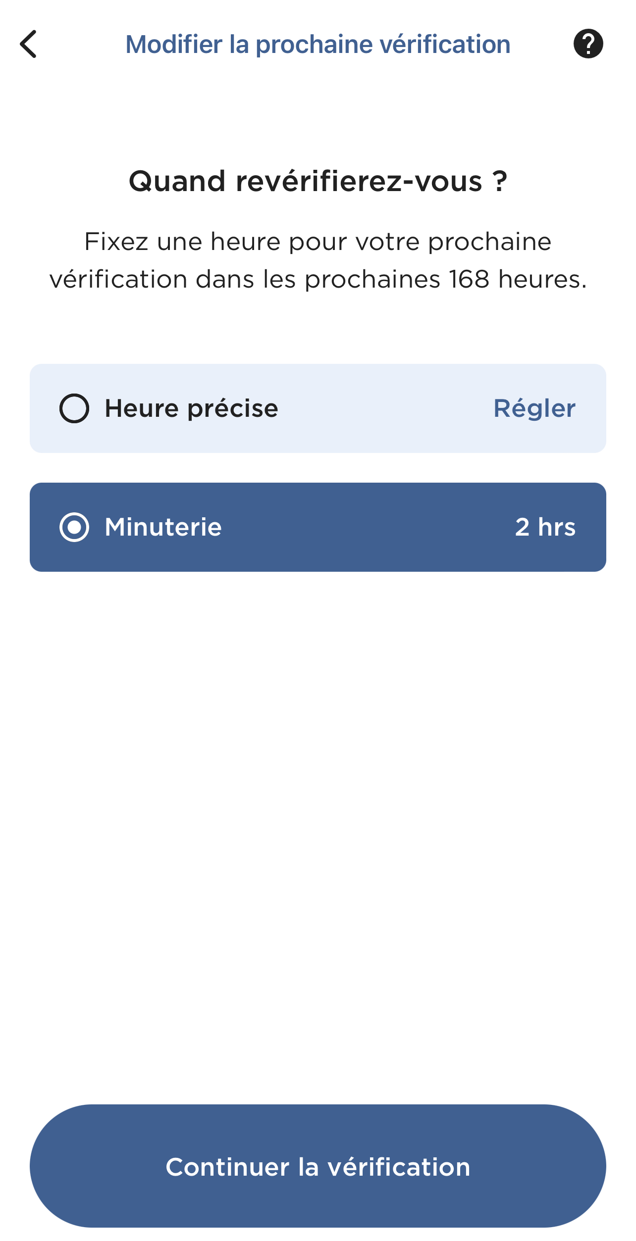 Vous pouvez maintenant ajuster la durée de votre prochain intervalle de vérification.